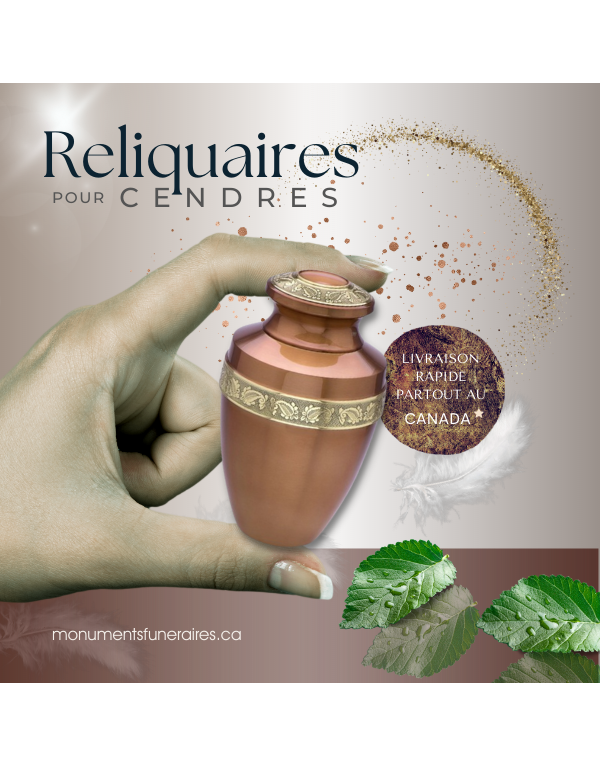 L'urne Cuivre de Vienne (Reliquaire) a une belle finition en cuivre accentuée par une bande à motif floral doré sur le corps et le couvercle.