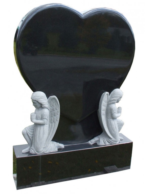 Un magnifique monument en forme de coeur accompagné d'anges sculptés à même le granit noir de première qualité. Un choix qui se fera intemporel.