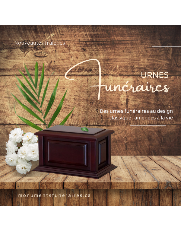 Cette urne rectangulaire de forme classique est fabriquée en bois de cerisier massif.