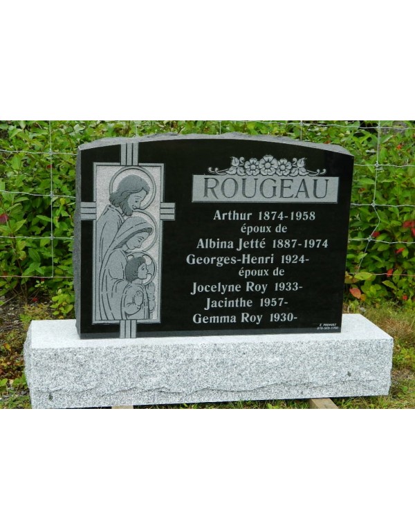 Monument de granit noir de dimension de 36"x30". Notez que ce type de granit vous permet dinclure une image gravée au jet de sable ou encore une gravure à la main.