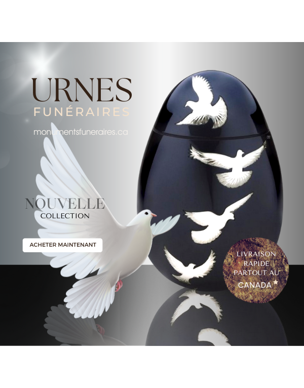 L'urne Nirvana Adieu symbolise le message d'espoir et de souvenir. Une belle façon d'exprimer un dernier adieu. L'urne de forme ovale présente de magnifiques oiseaux argentés gravés à la main qui volent sur un fond sombre. Les oiseaux représentent la liberté de l'âme et de l'esprit lorsqu'ils quittent le corps.